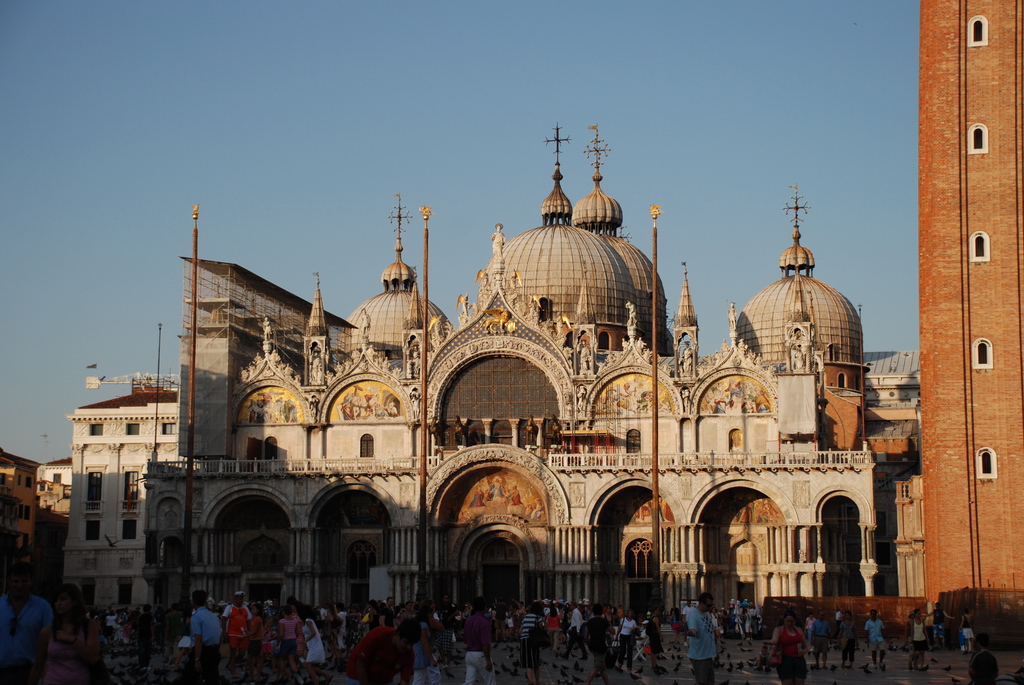 离开佛罗伦萨此次经过调整后的旅程,将罗马的住宿增加到了5晚,佛罗伦萨增加到3晚,而只好将威尼斯压缩到1晚,其实就是过路的中转站。 在佛罗伦萨还是留下了不少遗憾,包括有米开朗基罗和其他巨匠墓的圣十字教堂,布鲁内莱斯基设计的美第齐家族礼拜堂和里面的很多有价值的艺术品,有多纳泰罗的大卫的巴杰罗艺术馆,还有缤纷的时尚专卖店以及我们门口的Gucci院子等等,留待我们下次去填补吧。佛罗伦萨是个散发着无穷魅力的小城市,她最先在黑暗的中世纪觉醒,以孜孜的原动力创造了如此丰富的艺术佳作,望望城市中的有着无数故事的每一处角落,无法抵挡她的那种吸引。 一早,收拾行囊出发,看到在禁停区我们的欧宝仍然在那里,心里不禁放下一口气。其实也是,就冲意大利这样的慵懒劲,天相信警察叔叔会在早上8点以前上班去拖满大街的违章停车。 麦德龙的好心人约250KM的高速,其中大片的托斯卡纳山区风景,倒也宜人。中午前到达了威尼斯,上岛前的一个环岛居然转错了,不过也恰好让我们看到了麦德龙(Metro)而可以停下补充一下给养。一进去,果然和国内麦德龙相似,高大的货架,宽敞的空间,顾客并不多,而我马上意识到一个问题――国内麦德龙是只对商务会员开放的。问了一圈,好不容易有一个雇员懂英语,果然,这里不是Free Market,需要专业会员卡。在付款台听见我们和雇员谈话的一个大叔,了解了我们的窘境,微笑着说,这样吧,我借你们我的卡。呵呵,猪头有难总有贵人相助。感谢热情的意大利人呀! 加油通过一个长桥后,从大陆驶向了威尼斯本岛,在威尼斯岛上无法开车,只能坐船,之后是火车到因斯布鲁克,所以我们上岛后就要还车了。还车之前最好加满油箱,用Tomtom很快找到了一个加油站,有两排油枪,一排是自助――便宜,一排是人工――稍贵,当然选择自助了,而且此时工人也下班午休了。但是鼓捣自助加油机时又碰到了意外,我们之前站着一个苦脸大哥,也是从Avis租了车,准备加油后还回去,结果自助加油后没有找钱,看样子还不少,只好死等服务人员上班,而且也把加油机给锁住了。门上写着2:30上班。我们索性在加油站吃起了超市买的午餐。餐间,无数老外开着车捣鼓加油,无果而离开。眼看吃完饭,也2:30多了,也没见人来,这时另外一个人说,这边另外一个门上写着3点上班,吼吼。此时,Tomtom起了作用,指出岛上几十米开外还有一处,顺利加油还车。 还车后准备到旁边的旅游信息中心Information问一下,里面除了一个胖大姐傲慢地坐着,空无一个游客。非常不热情,也没有提供什么有用信息,这是威尼斯给我们的第一个不好的印象。 之后,就是在大太阳底下我们5个人拖着大包小包,走了几站地到今天的Basilea旅馆,其实还不是太远,不过因为天热,街上全是游人,领导已经有点坚持不住了。到了旅馆,倒是一个比较安静的小河边,推开窗户就是河,另外一个屋子窗外是一个漂亮的花园。 买了24小时的船票,感觉威尼斯就是什么都贵,要15欧一人,可以自由乘坐岛上的所有公交船、车。而威尼斯的公交船和10年前北京的公共汽车一样脏,玻璃上仿佛镶嵌壁画般是从没有擦过的污渍,几乎无法看到外面的景致,真不知这样的地方也能接待如此之多的游客。传说中的贡都拉倒是不错,那是相当于出租车,而且是奔驰一挡的,坐一次要70、80欧,看来要风情是要有高代价的。 也许我们太匆匆了,缺乏了闲暇的心情去欣赏和体会它的特殊之处,所以更少了对它的好感。 漫无目的地坐着船到丽都岛,然后到回到主岛的圣马可广场。威尼斯的教堂确实有点特别,圆顶带有一些伊斯兰的风格,有点异国味道。圣马可广场其实还不错,但是就是有点装饰过度的俗气。包括大教堂的前脸,包括广场四周的装饰柱墙,有点稍微超过美感的,而显得装饰元素拥挤。 圣马可广场圣马可广场的鸽子此时已经欣欣向荣,和广场上拥挤的人群数量不相上下。而且鸽子都不怕人,专等着人来喂。胆小的青青也禁不住诱惑,买了包鸽子食,放在手里等鸽子啄食。而我们坐在广场的尽头廊下,也算悠闲,太阳将落,光线柔和。 向回走去,路旁尽是手工艺和纪念品的摊铺,比较有特色的就是面具和玻璃制品。色彩艳丽,样式缤纷。 晚上回到旅馆,和前台要了些冰块,就着我们没喝完的葡萄酒和今天在麦德龙买的啤酒,畅饮起来。小酒一喝,还真有点轻飘飘的,呵呵。 10:30,趁着小酒风,我们走到火车站前,本想看看晚上是否可以坐船沿这大运河一游,结果发现这个时间的船比白天还挤,人都站着。其实喜欢威尼斯的人还是不少,威尼斯这里也曾有过辉煌的历史,也出过杰出的艺术家,例如我们喜欢的提香。但是需要有充分的时间和悠闲的心情,我们这么匆匆路过确实很难体会了。 另外,过于集中的游人,也使得威尼斯稍显得拥挤而喧闹。